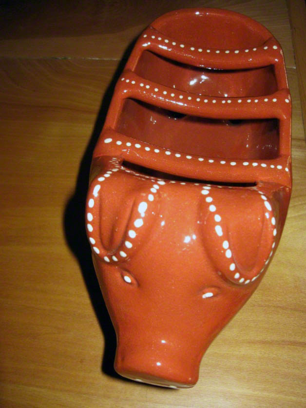 This whole adventure started with a search for the perfect sausage to use in a recipe for pork with clams, which led to a little ceramic pig, and ended up with a truly excellent party. This cute little piece of specialty cookware, which looks like footwear for some impossible outer-space monster, is in fact designed for brazing sausages over flaming, hi-octane Portuguese liquor. As we learned the purpose and the method for using this device, we became completely distracted from our original mission and found ourselves planning a sausage-roast.