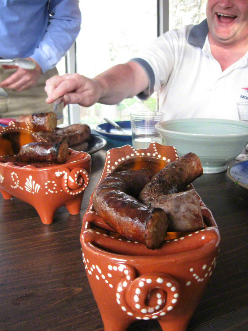 First, we had to obtain the little pig dishes from Portugal – that was easy and took only a few weeks. As soon as the dishes arrived we set about making home-smoked sausages and invited some guests to come over and roast them with us – RSVPs were instantaneous and none declined the invitation.