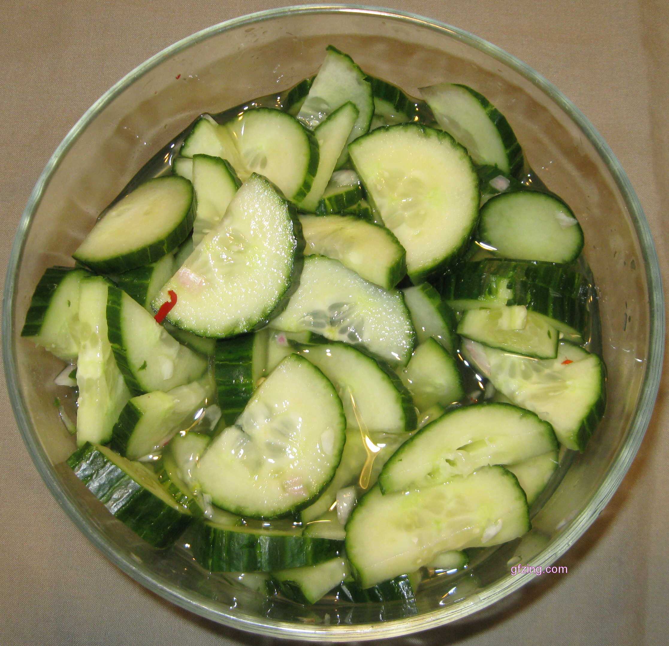 Salad is the BFF (best friend forever) of seasoned gluten free eaters. Here is another simple, inexpensive gluten free dressing that can be used on many different kinds of fresh vegetable. In this case, we used English cucumbers – those long, long cucumbers that are often sold mysteriously laminated but have the advantage of holding few seeds.